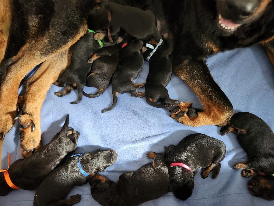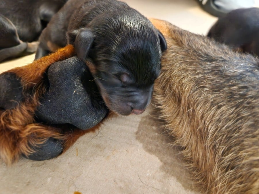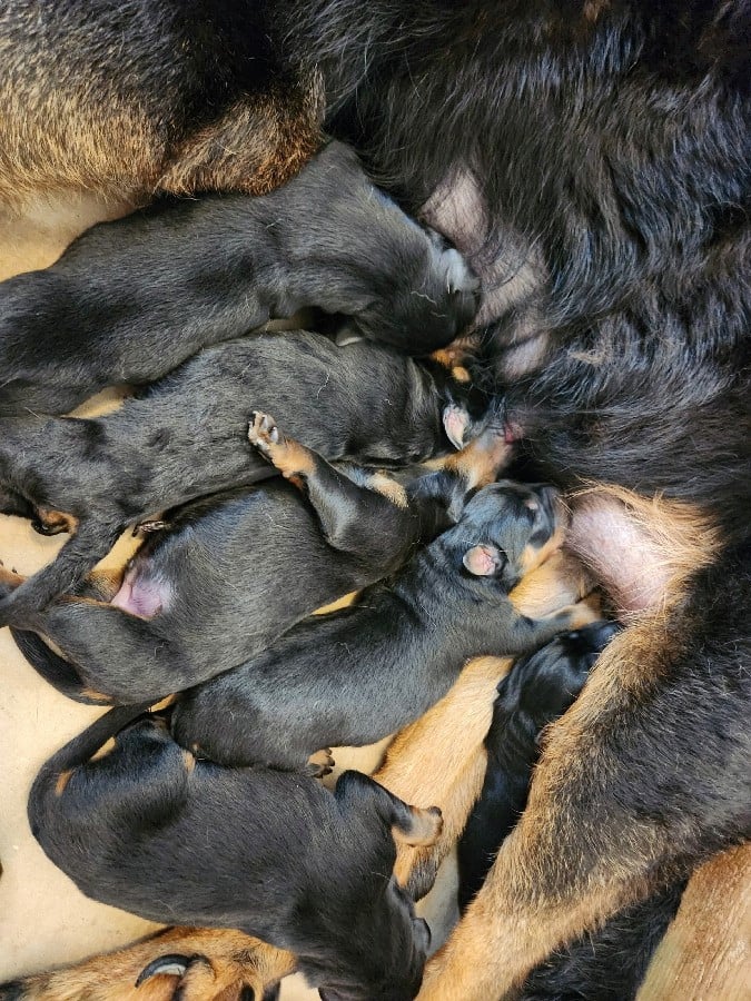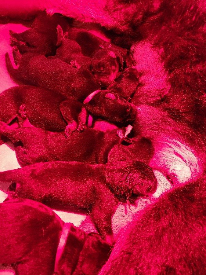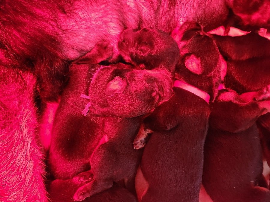 Les chiots partiront à partir de l'âge de 8 semaines, soit le 7 mai 2026, avec l'inscription au LOF, l'identification par puce, la primo vaccination, un certificat véterinaire de bonne santé, et vermifugé (4 fois). Photos mélangées de leur 1er à leur 4e jour de vie.