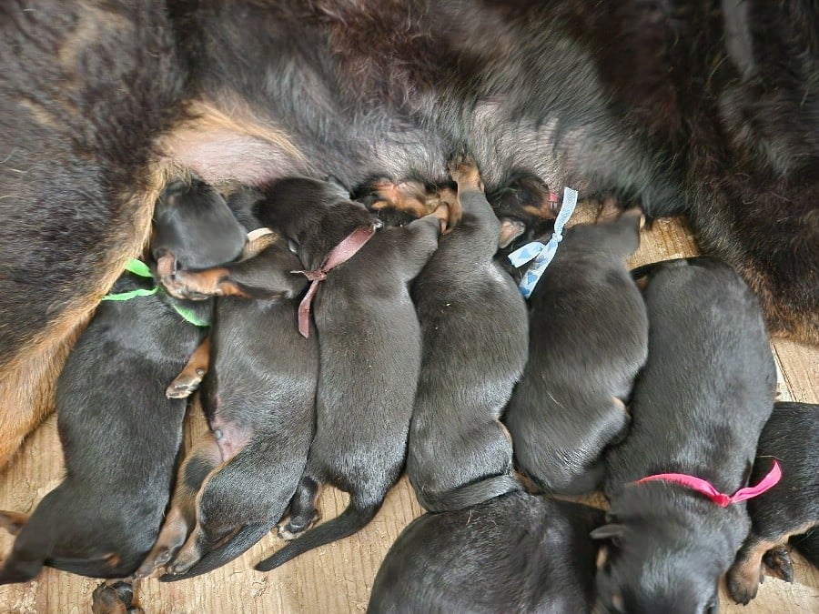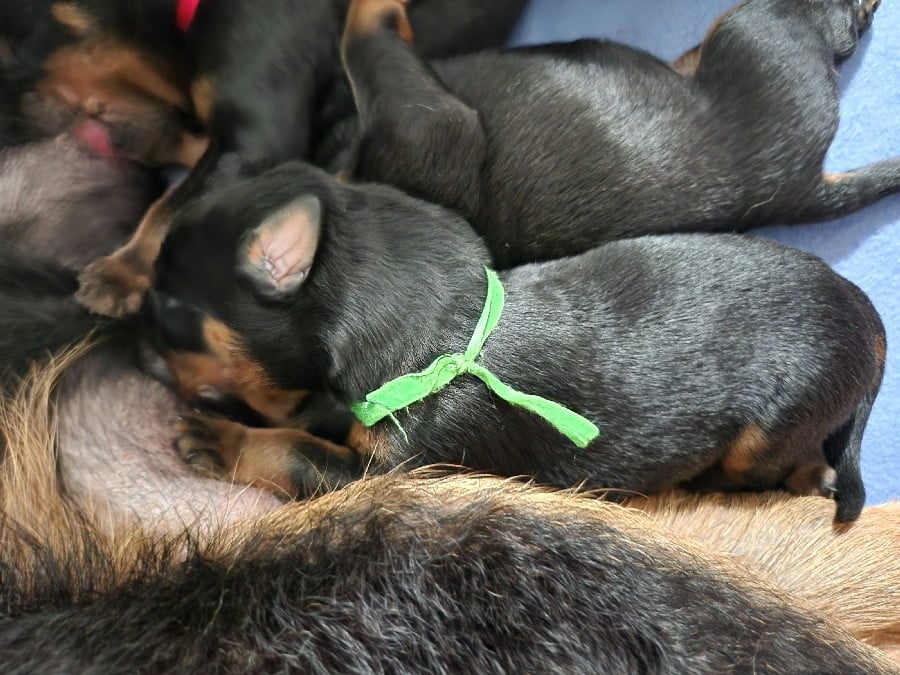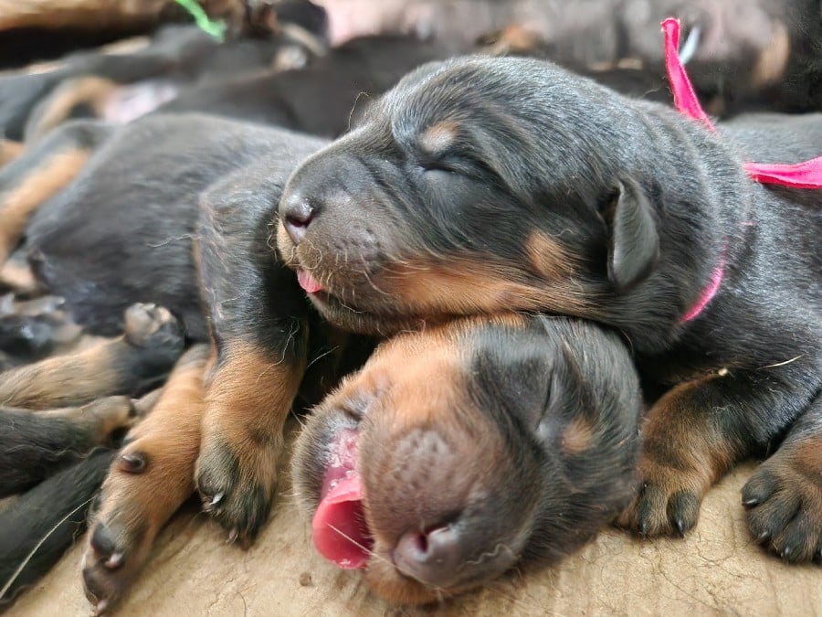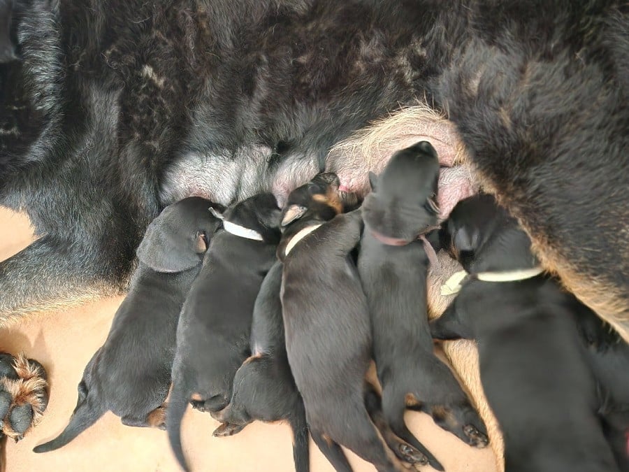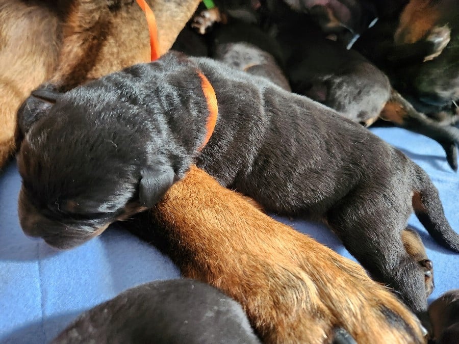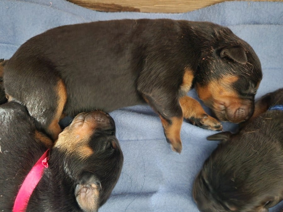Les chiots partiront à partir de l'âge de 8 semaines, soit le 7 mai 2026, avec l'inscription au LOF, l'identification par puce, la primo vaccination, un certificat véterinaire de bonne santé, et vermifugé (4 fois). Photos mélangées de leur 1er à leur 4e jour de vie.