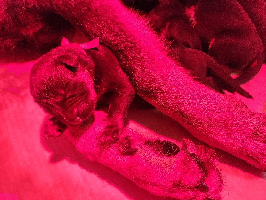 Les chiots partiront à partir de l'âge de 8 semaines, soit le 7 mai 2026, avec l'inscription au LOF, l'identification par puce, la primo vaccination, un certificat véterinaire de bonne santé, et vermifugé (4 fois). Photos mélangées de leur 1er à leur 4e jour de vie. Il reste une femelle sur les 4 de disponible à la réservation (le choix ne sera possible qu'au départ).